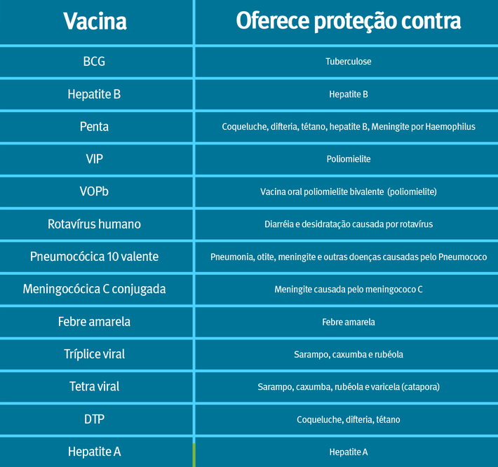 As vacinas para o público de até 5 anos.