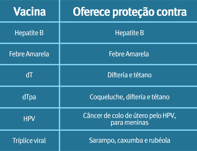 Quem tem entre 9 e 14 anos também está contemplado na Campanha Nacional de Multivacinação. Com relação ao público compreendido dentro dessa faixa etária, as doenças preveníveis com a vacina são: hepatite B, febre amarela, sarampo, caxumba, rubéola, difteria, tétano, coqueluche e, no caso das meninas, HPV.