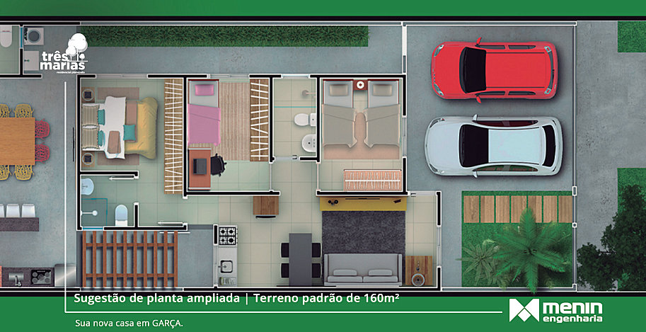 O residencial Três Marias foi estrategicamente projetado para oferecer conforto, qualidade de vida e acesso fácil e rápido a qualquer ponto da cidade. São casas de dois dormitórios, sala, cozinha e banheiro com laje e lavanderia coberta, com terreno padrão de 160 m2 (8,00 X 20,00).