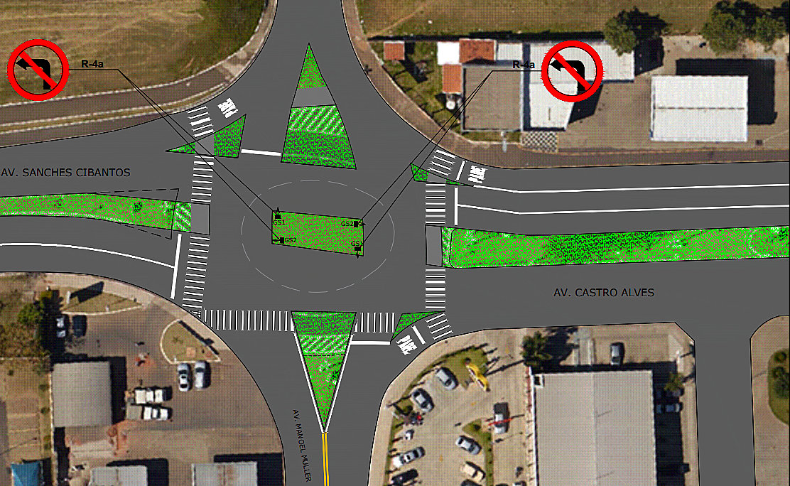 Será o mesmo trajeto para quem segue pela Manoel Muller: o motorista fará conversão à direita para andar uma quadra pela Castro Alves até o retorno caso pretenda acessar a Sanches Cibantos em direção ao Confiança Aquarius, por exemplo, ou à rodovia do Contorno.