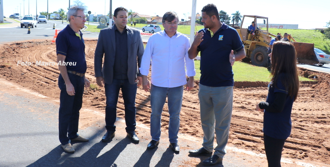 O prefeito Daniel Alonso esteve acompanhando o início das obras, ao lado do presidente da Emdurb, Dr. Valdeci Fogaça, e do engenheiro de trânsito, Rogério Antônio Alves.