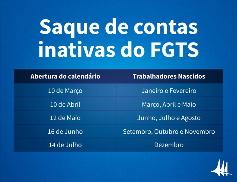 Passo 2 - É importante ficar atento às datas estipuladas para os saques do FGTS. A Caixa organizou o calendário de acordo com as datas de nascimento dos beneficiários. Quem nasceu em março, abril e maio deve sacar o benefício entre 10 de abril e 11 de maio. Trabalhadores nascidos nos meses de junho, julho e agosto vão sacar entre os dias 12 de maio e 15 de junho. Nascidos em setembro, outubro e novembro vão receber os valores entre 16 de junho e 13 de julho. Já os trabalhadores nascidos em dezembro poderão fazer o saque entre os dias 14 e 31 de julho.