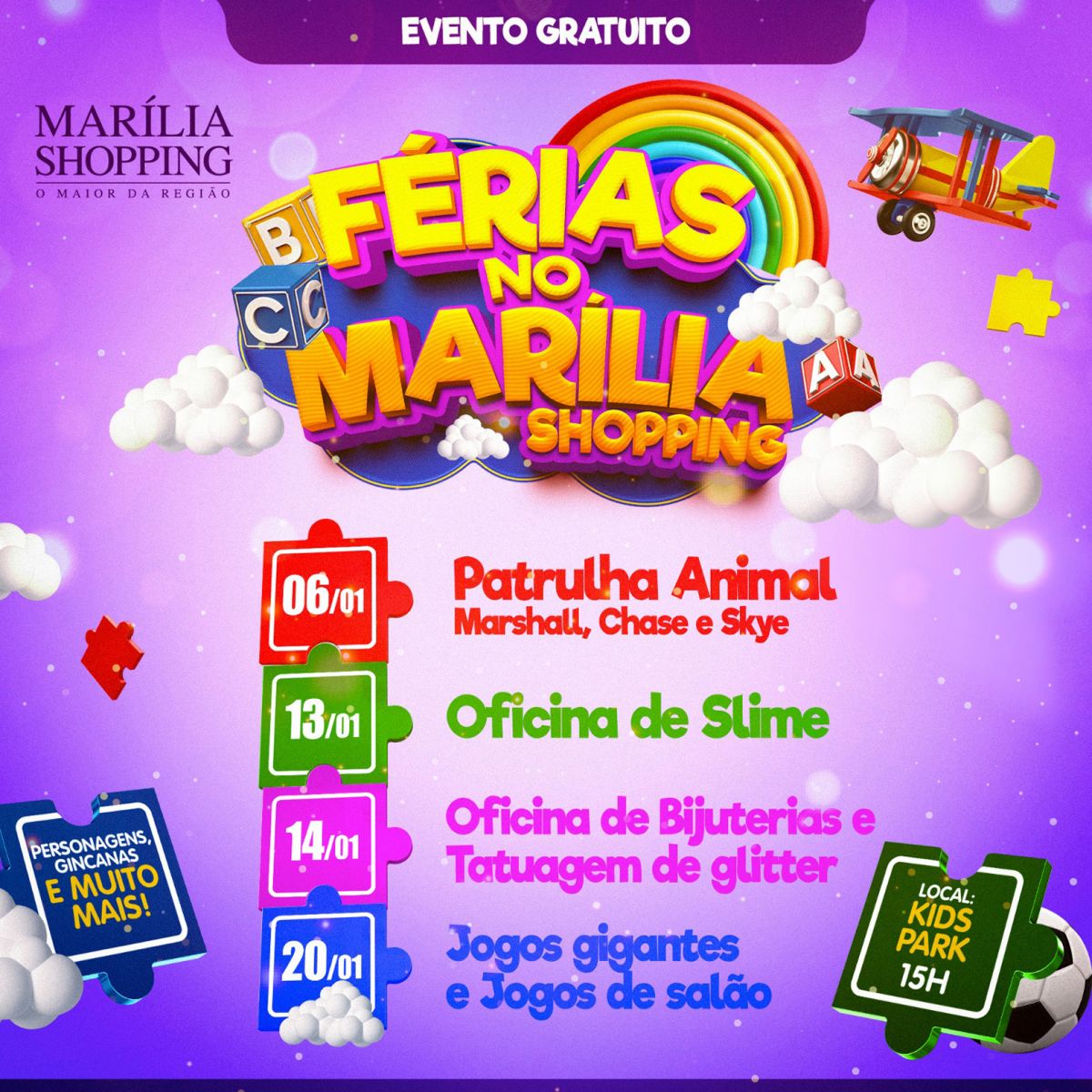 Pensando nisso, o Marília Shopping preparou uma programação especial para garantir a diversão da garotada. Gratuitas, atividades começam neste sábado (dia 6) e prosseguem até o dia 20 de janeiro.