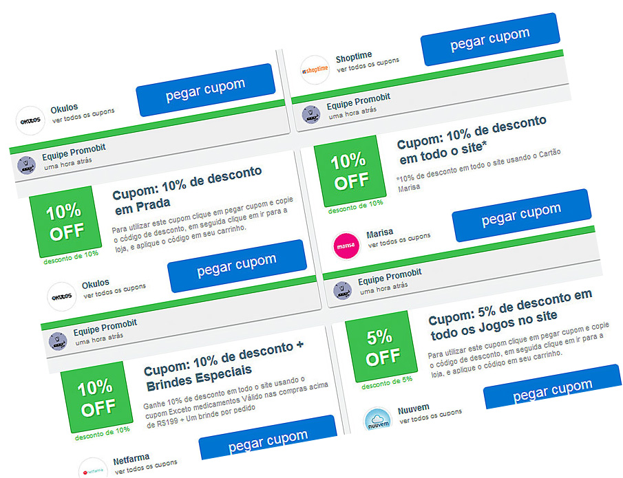 Os cupons de desconto online geram para os usuários uma economia nas compras de 15% a 30%, aproximadamente. Para aplicar os descontos, basta copiar o código do cupom e inserir no carrinho de compras no campo indicado.