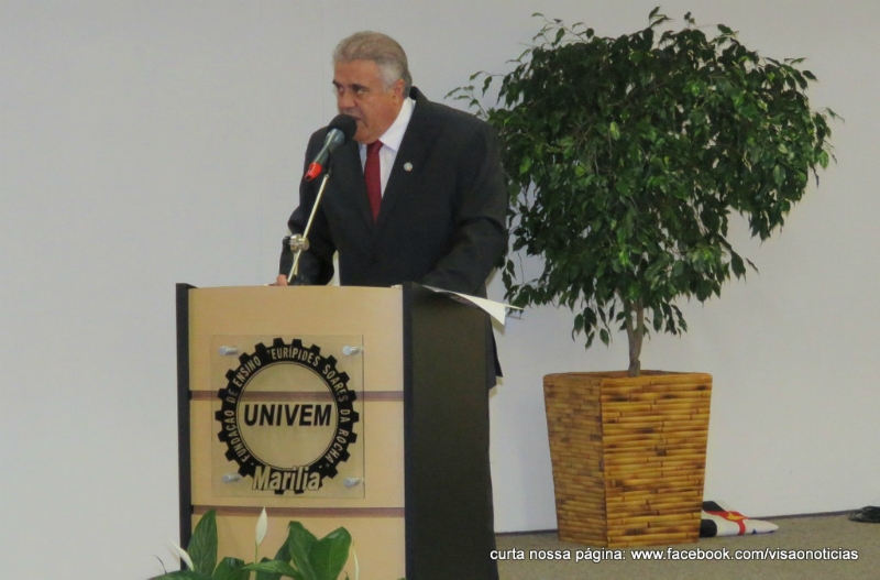 Reitor do Univem, Luiz Carlos de Macedo Soares, durante a abertura do evento.