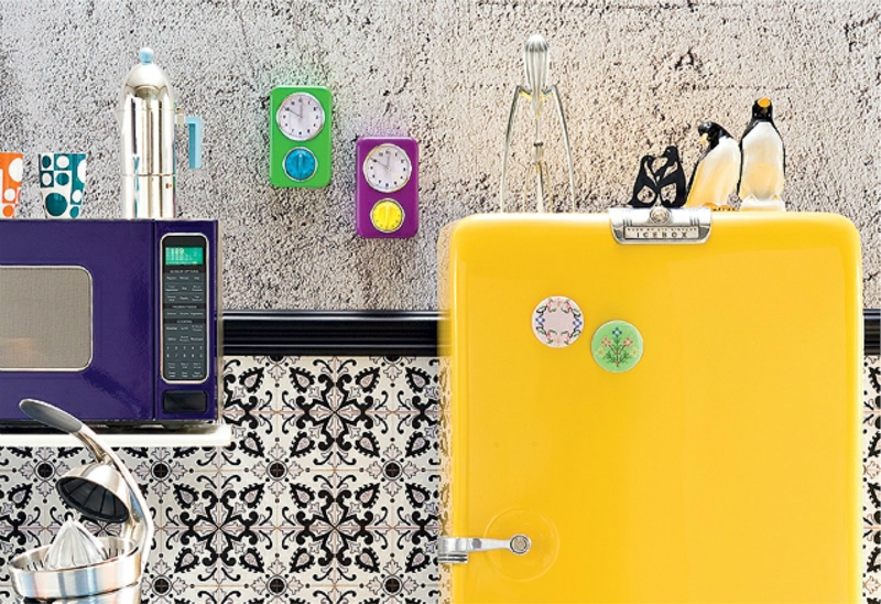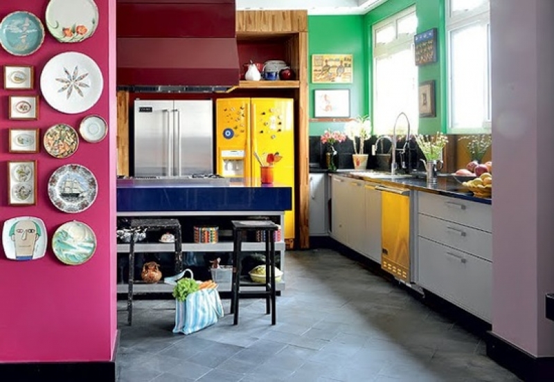 Para as pessoas que não são tão ousadas, vale manter paredes e pisos com cores neutras e mais sóbrias para brincar com cores vivas nos móveis e objetos, de forma a balancear a excentricidade da decoração.