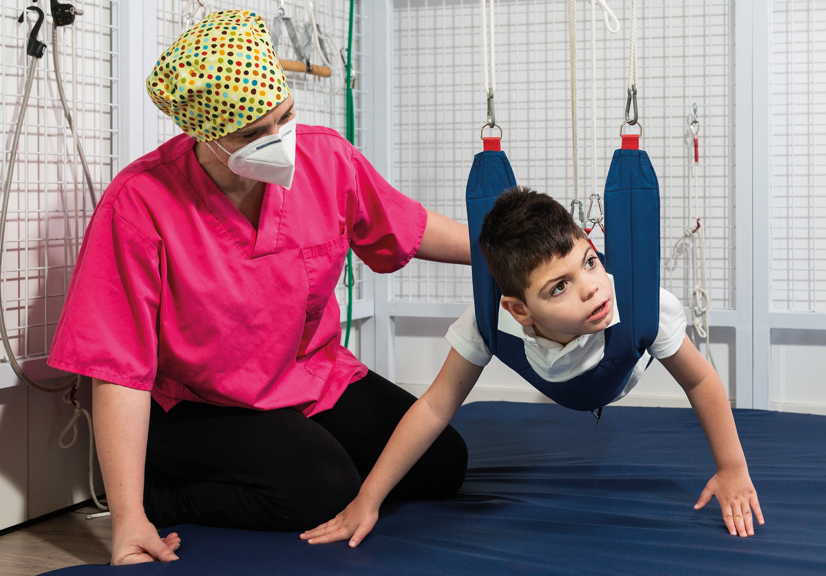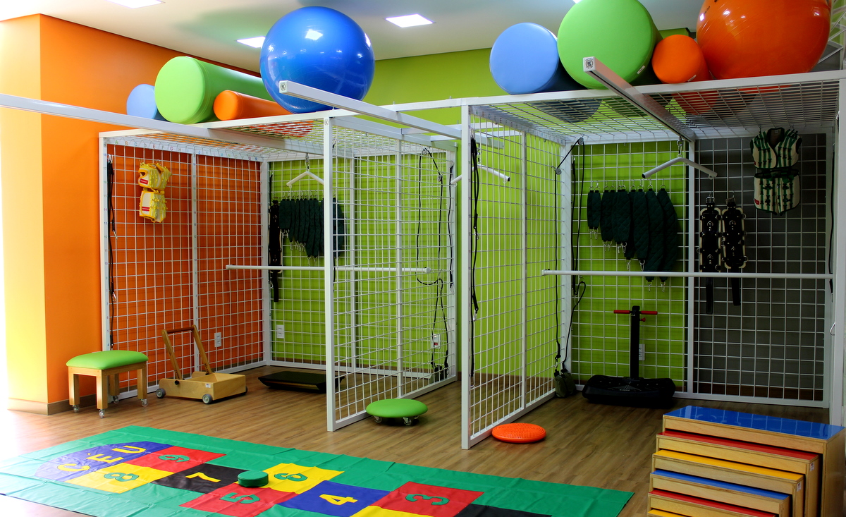 Toda a estimulação motora e cognitiva é realizada dentro de um ambiente terapêutico lúdico no qual os fisioterapeutas buscam associar a brincadeira com a proposta terapêutica.