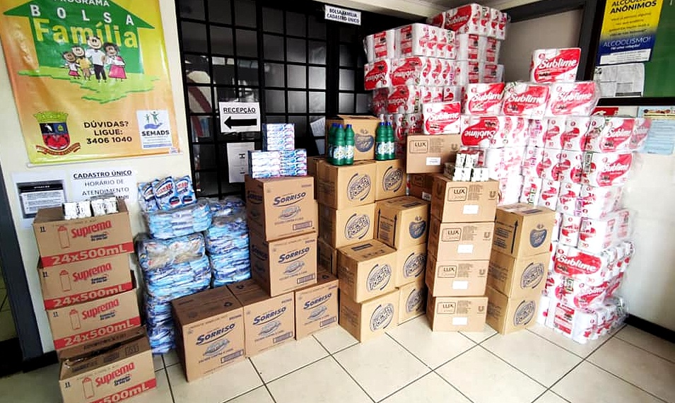 Os kits são compostos por água sanitária, sabão em pó, papel higiênico, creme dental, sabonete e serão destinados pela prefeitura para famílias em situações de vulnerabilidade, como explica Raquel Sartori, gerente de RH da Garen.