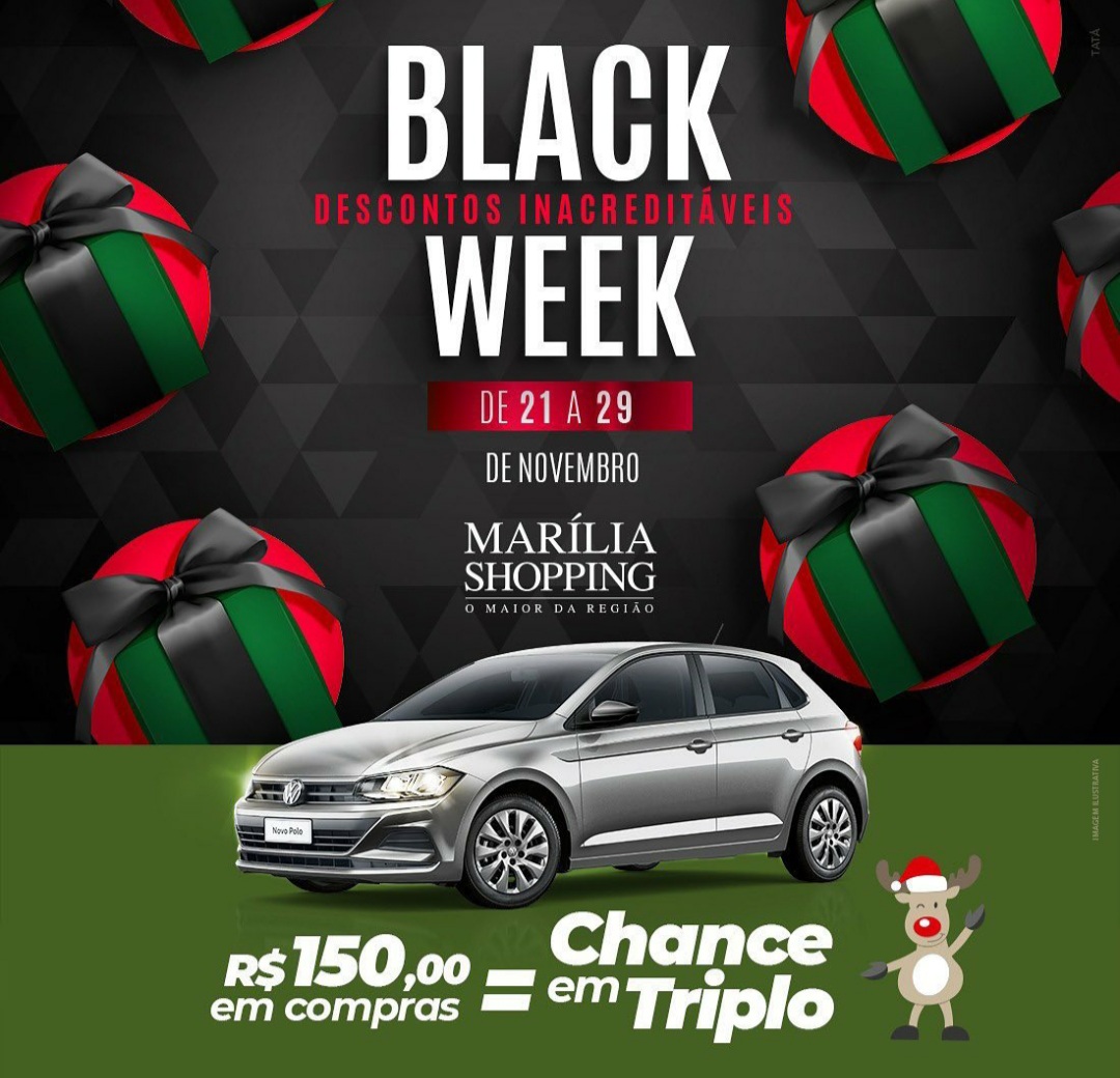Até domingo (29), o Marília Shopping promove a Black Week, que traz muitas peças e produtos de qualidade com ofertas irresistíveis. Ofertas vão desde roupas femininas, masculinas e infantis até calçados, acessórios, produtos para casa, brinquedos, perfumaria e tecnologia.