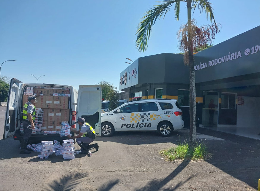 A apreensão ocorreu na rodovia Comandante João Ribeiro De Barros, em Oriente. Os cigarros contrabandeados lotaram completamente o compartimento de carga de uma Van Renault/ Master.