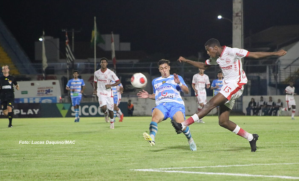 O MAC virou no segundo tempo. Aos 28 minutos, também após um lance de bola parada, o árbitro viu um puxão em Pedro Baltazar e marcou pênalti para o time da casa, marcado por Breno.