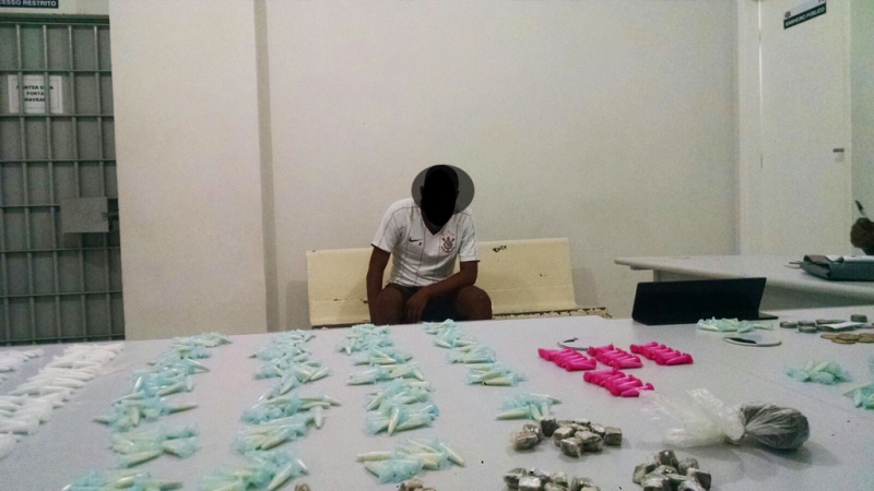 Foram apreendidos um total de 705 pinos de cocaína, 427 pinos de crack e 81 trouxinhas de maconha. Um indivíduo foi preso e um menor apreendido pelo crime de tráfico de drogas, além de certa quantia em dinheiro.