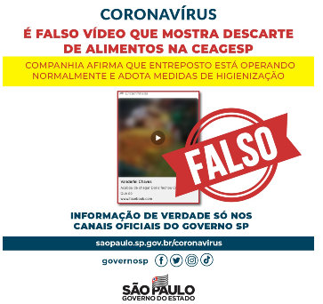 É mentiroso conteúdo divulgado em redes sociais que traz um vídeo com descarte de alimentos na Ceagesp (Companhia de Entrepostos e Armazéns Gerais de São Paulo), associando as imagens à epidemia do novo coronavírus.
