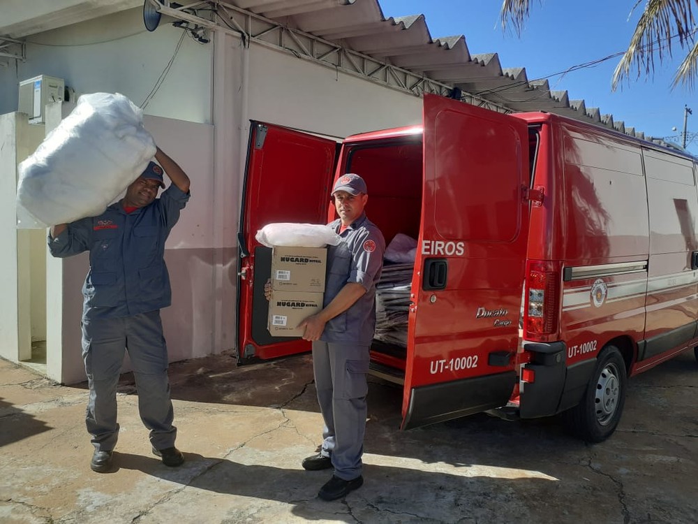 Equipes do Corpo de Bombeiro de Marília estão no local equipados com máscaras e kits de proteção para receber as doações até as 18h desta sexta-feira.