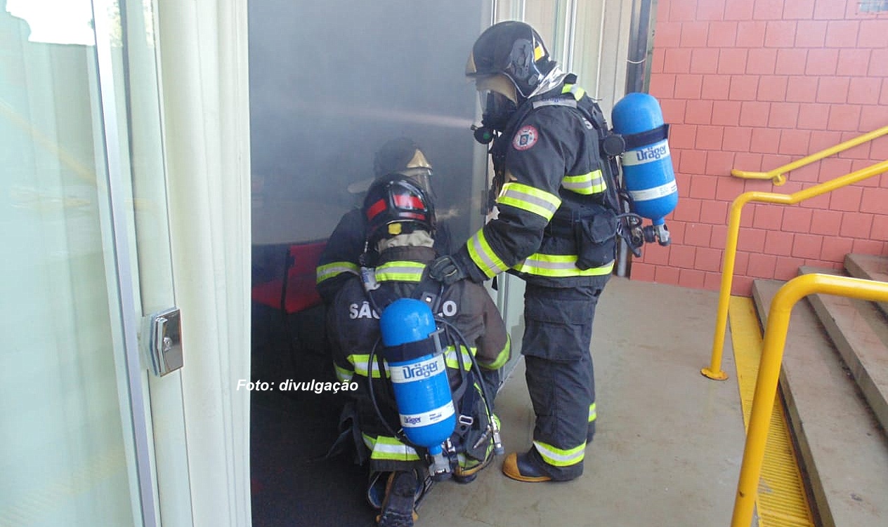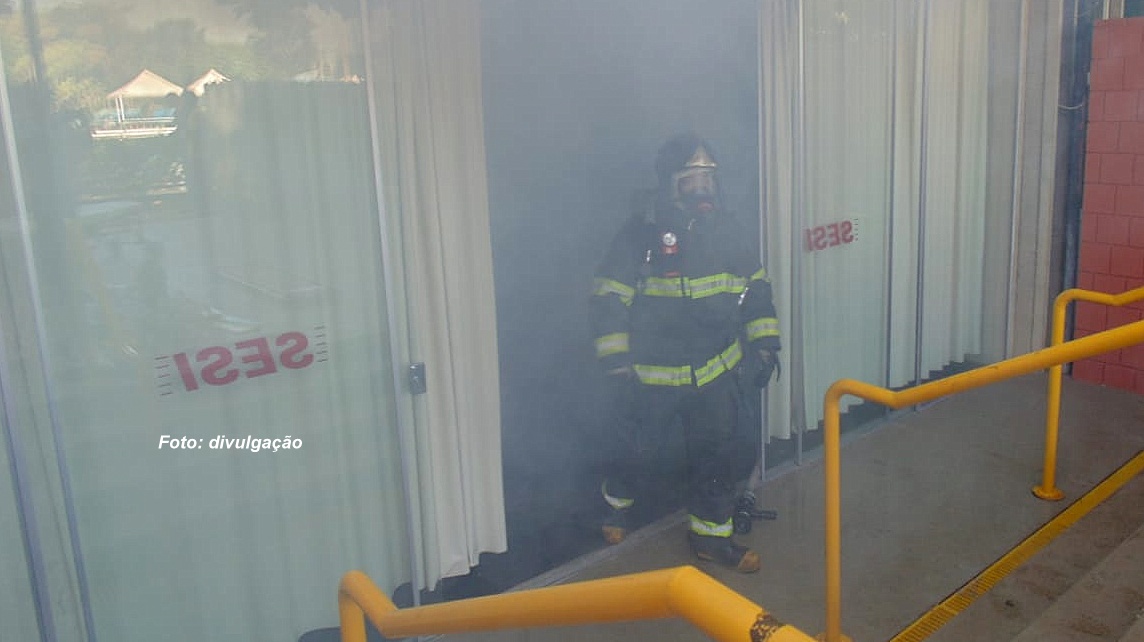 Equipes envolvidas no incêndio simulado no SESI em Marília.