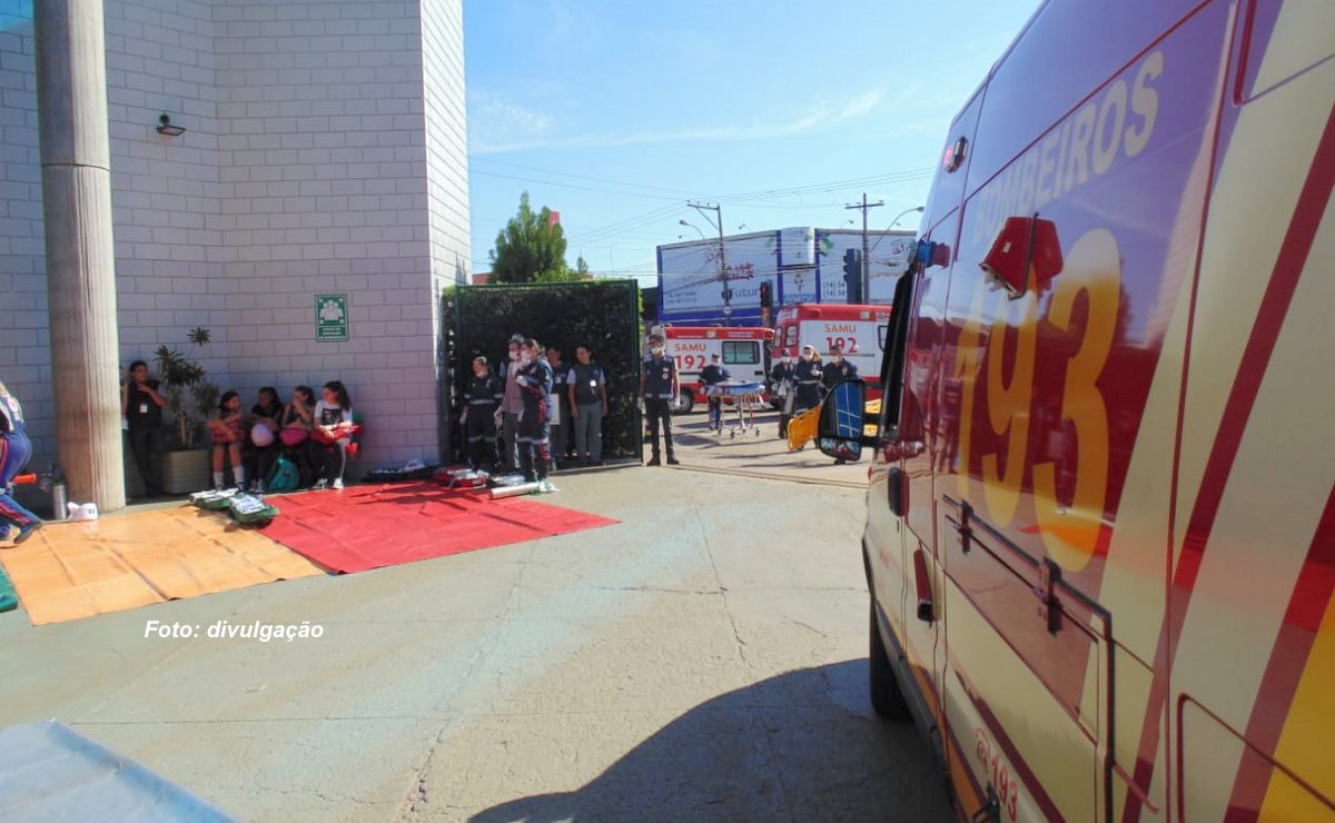 O Corpo de Bombeiros realizou esta semana, no Sesi de Marília, um simulado de atendimento de ocorrência naquele local, envolvendo mais de 700 pessoas entre alunos, funcionários e educadores. A ação teve também as participações do Samu, Gaoc, Polícia Militar, brigadistas do Sesi, além da Defesa Civil.