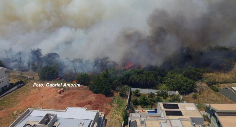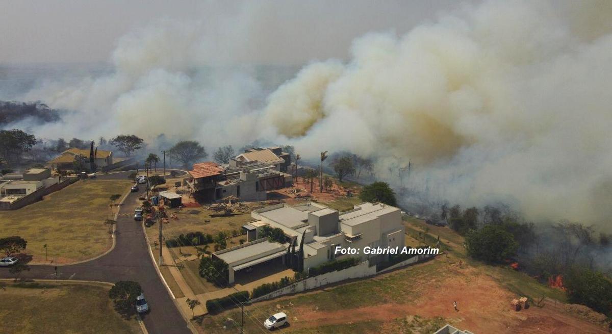 Para complicar ainda mais a situação, com o tempo seco um fogo em vegetação está colocando em risco dois condomínios de luxo na zona leste: o Portal da Serra e o Dahma.