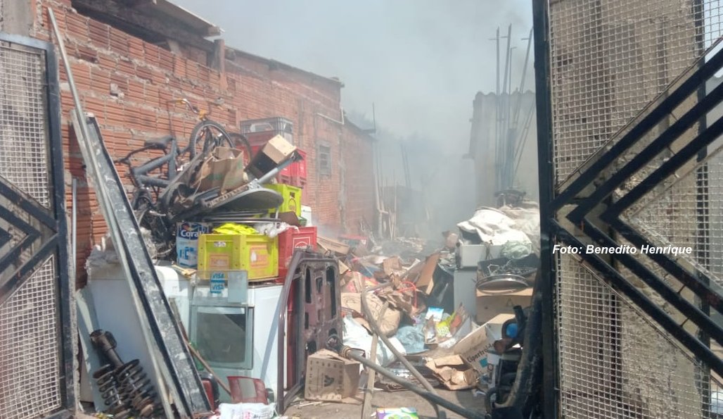 O fogo começou num imóvel que tinha um grande de material reciclável, chegando a atingir outro imóvel.