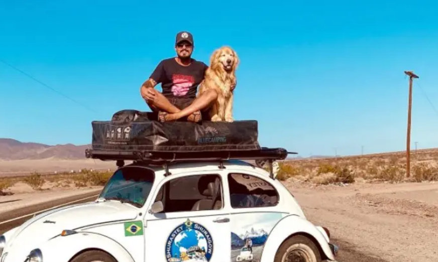 Conhecidos por viajarem o mundo, o influenciador e o cachorro estavam em um Fusca 1978 que colidiu contra outro veículo, próximo da cidade de Portland, nos Estados Unidos.