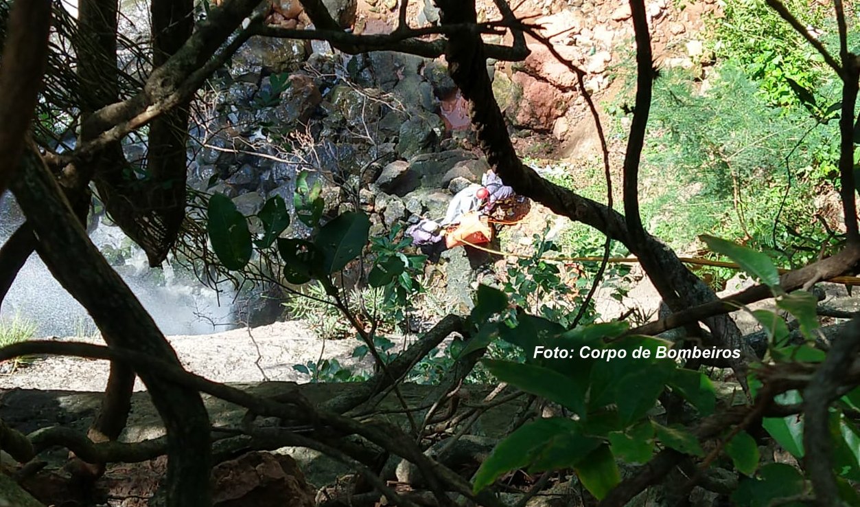 Operação dos Bombeiros foi demorada porque o local é de difícil acesso.