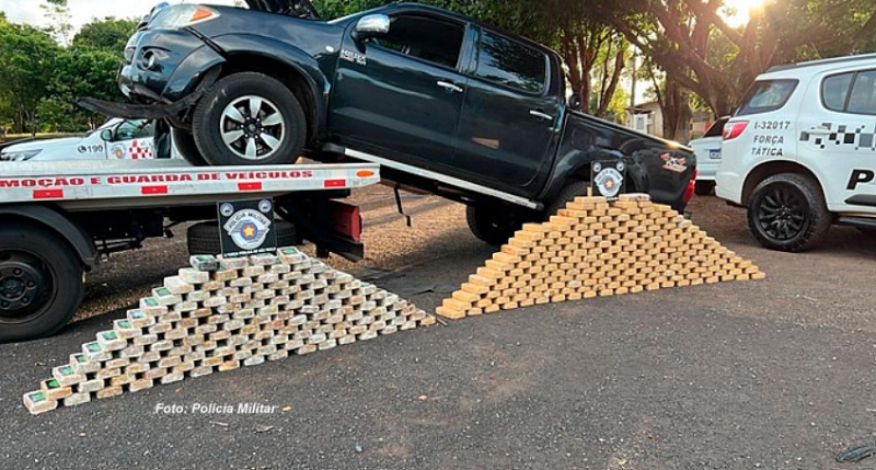 Ao levantarem o banco traseiro, encontraram 195 tabletes de pasta base de cocaína e 131 tabletes de crack (totalizaram 338,65 kg), além de quatro celulares e R$1.528,00 em dinheiro.