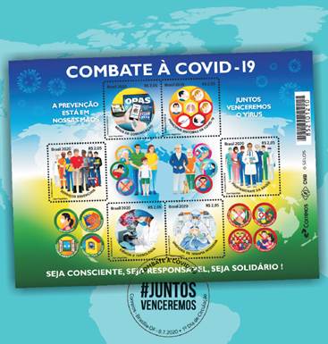 Nesta quarta-feira (8), os Correios lançarão um bloco de seis selos em homenagem aos trabalhos de combate à pandemia do novo coronavírus, que provoca a Covid-19.