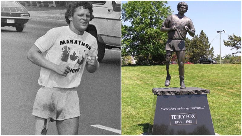 Diagnosticado com osteossarcoma aos 18 anos, Terry Fox perdeu uma de suas pernas e, ao se recuperar, decidiu cruzar o país de costa a costa, para arrecadar fundos para pesquisas para combate ao câncer.