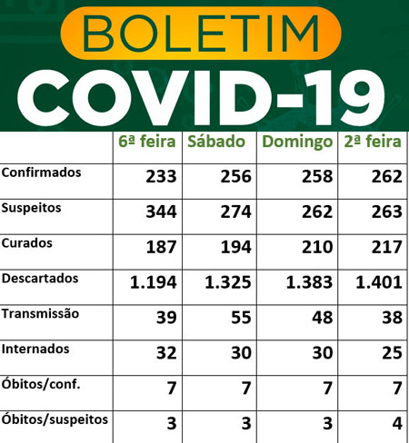 Os dados foram divulgados no final desta manhã pela Secretaria Municipal da Saúde, no boletim epidemiológico desta segunda-feira. O Visão Notícias montou um quadro comparativo dos últimos quatro dias.