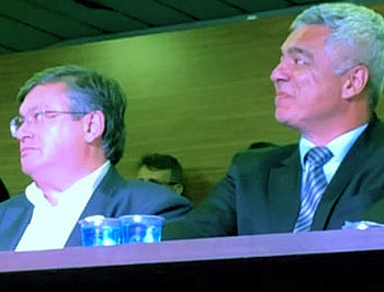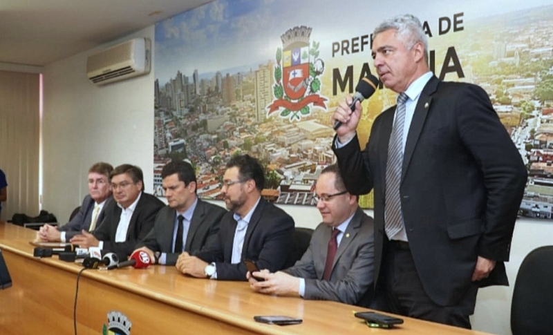 Major Olimpio (ao lado do prefeito Daniel) durante visita a Marília, em agosto do ano passado