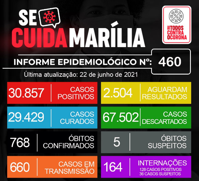 A cidade de Marília soma 768 óbitos pela doença. 660 seguem em transmissão.