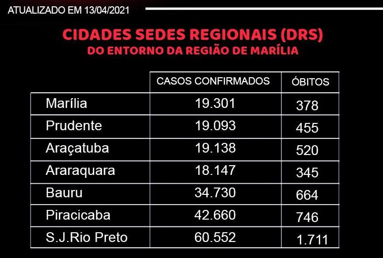 A taxa de ocupação de leitos só foi divulgada em relação a Marília e, como nas últimas semanas, permanece muito preocupante.