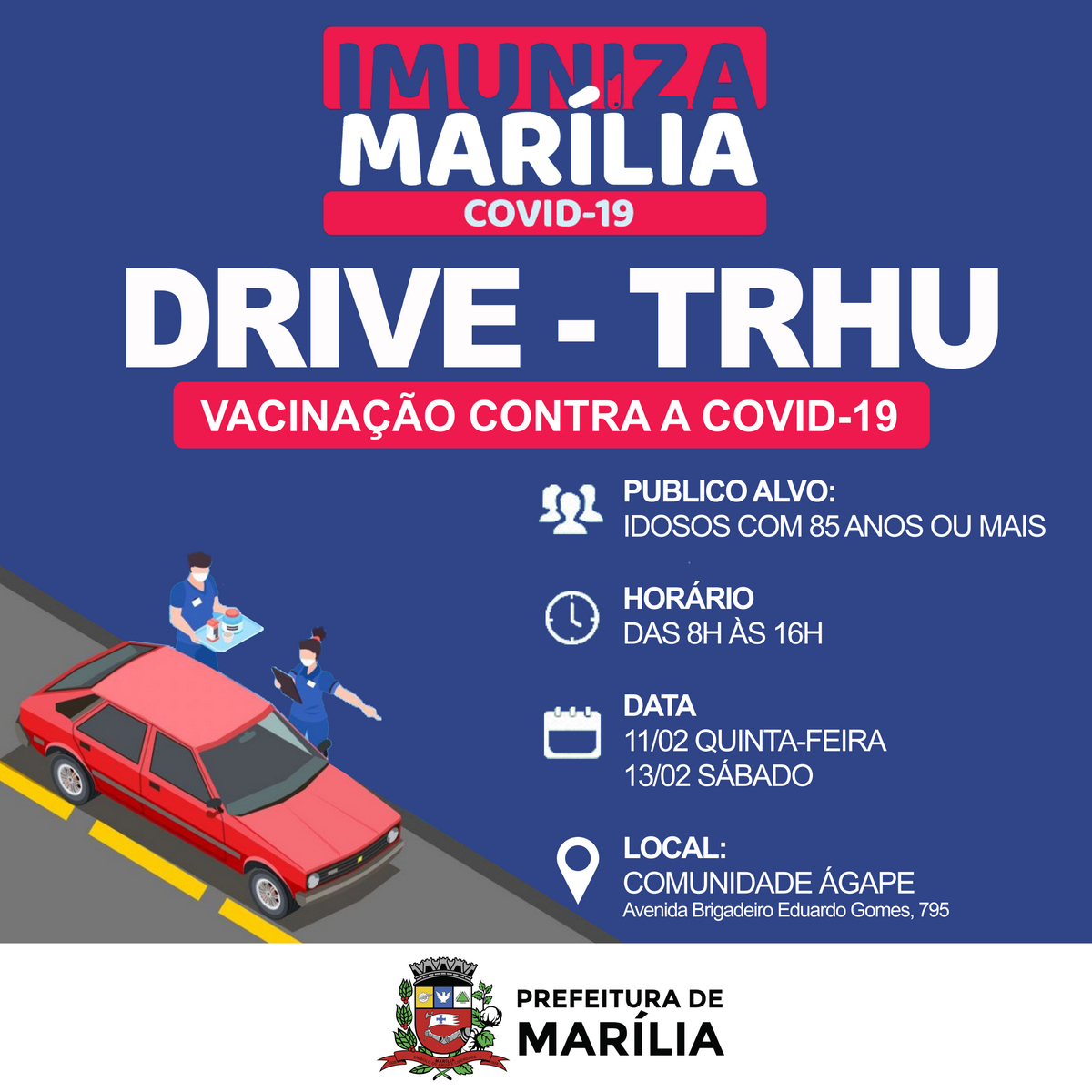 A Secretaria Municipal da Saúde de Marília vai realizar no sábado mais uma etapa do drive thru para imunização contra Covid-19, para pessoas acima de 85 anos, não acamados.