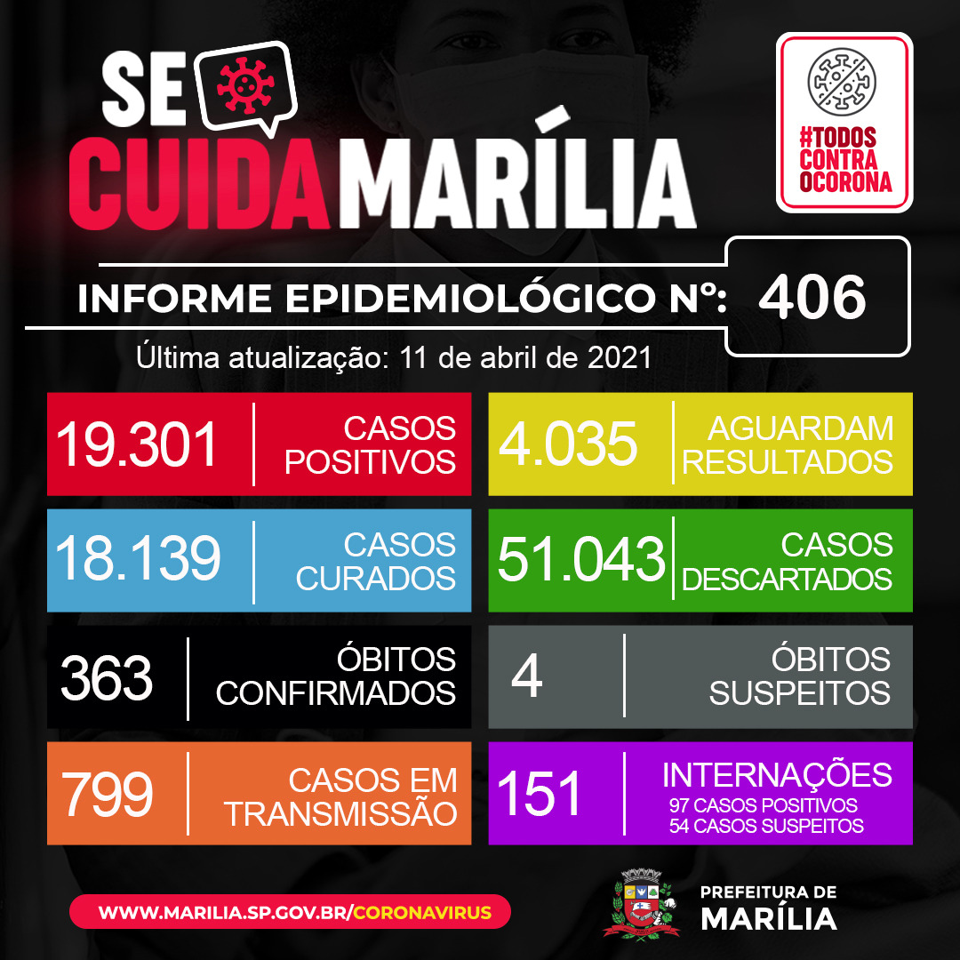 Nos últimos sete dias Marília registrou um total de 31 mortes, sendo três delas somente nas últimas 24 horas. Uma das pessoas sem comorbidades. É a segunda semana com maior número de casos. Na anterior, haviam sido registradas 43 mortes.