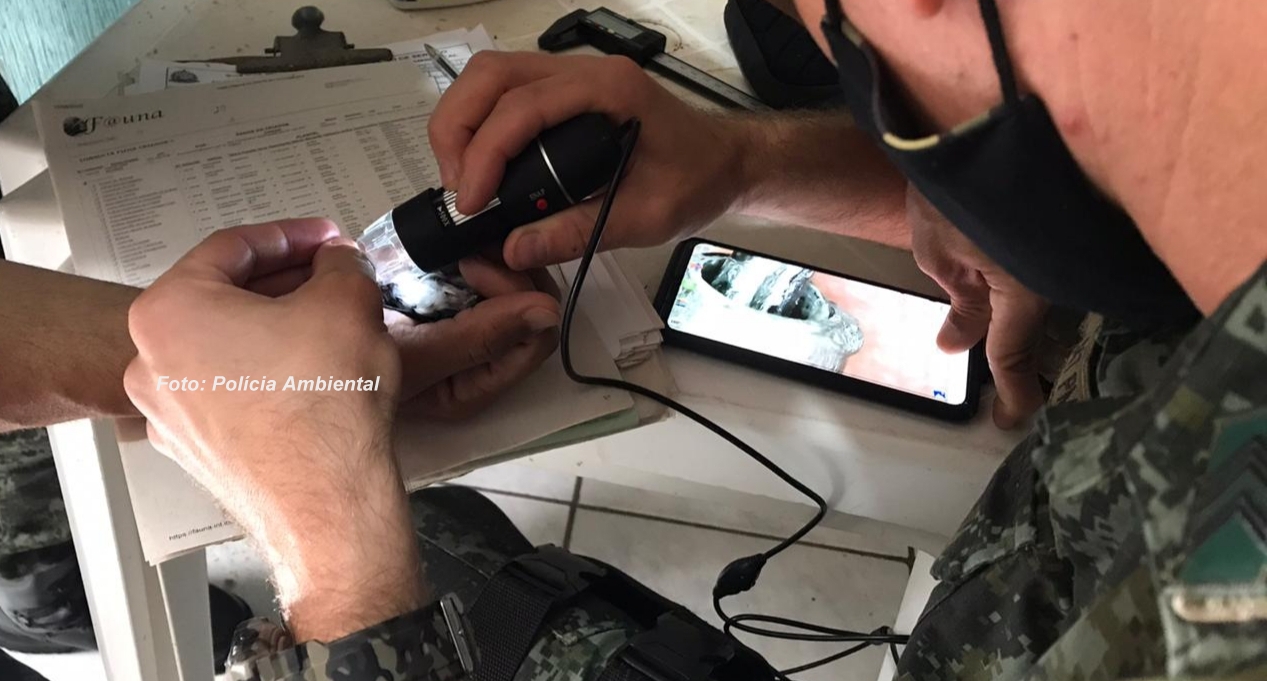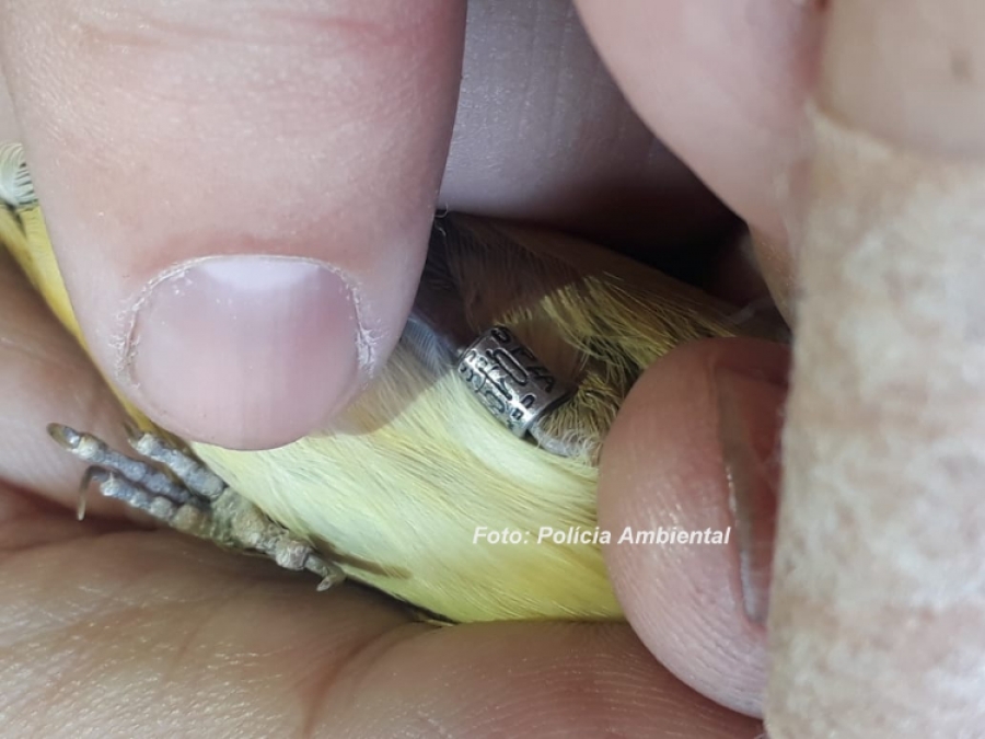 Policiais ambientais verificam as anilhas das aves e constataram irregularidades.