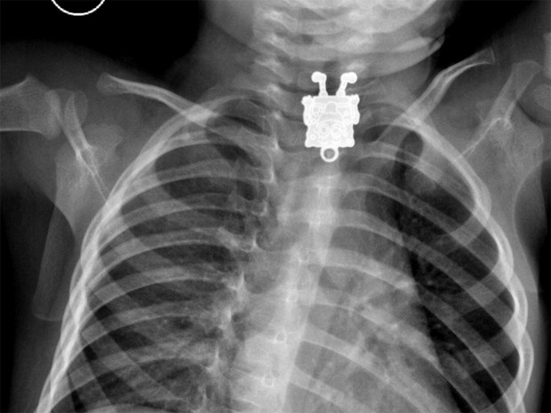 Médicos da Arábia Saudita se surpreenderam ao examinar um raio-X de um garoto de 1 ano e 4 meses que aparentemente tinha se engasgado com um objeto.