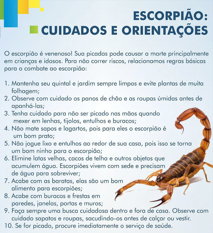 Uma criança de apenas um ano foi salva pelos médicos em Assis após ser picada por um escorpião, informa o site Assiscity. O estado de saúde dela foi considerado grave e teve até que ser internada na UTI. Por isso, os profissionais da área orientam sobre como agir nesses casos e ao mesmo tempo da importância de manter os quintais limpos.