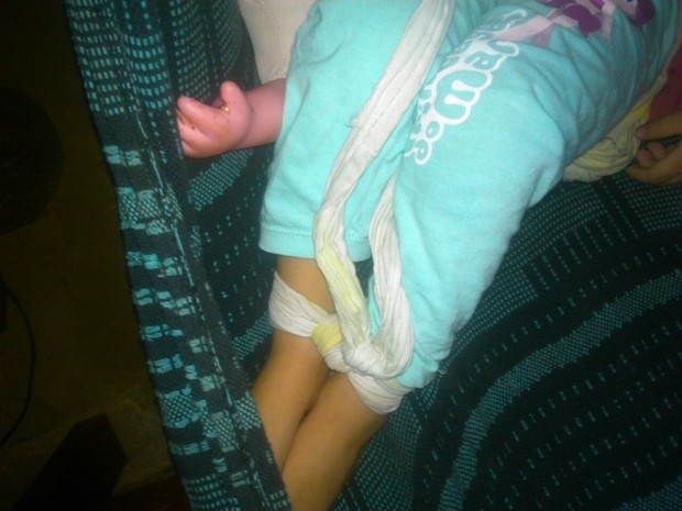 O pai da criança justificou a atitude dizendo que precisou amarrar os filhos enquanto ia pegar a mulher no trabalho. Esta versão foi contestada pela polícia, já que os vizinhos denunciaram que escutam as crianças gritarem com frequência.