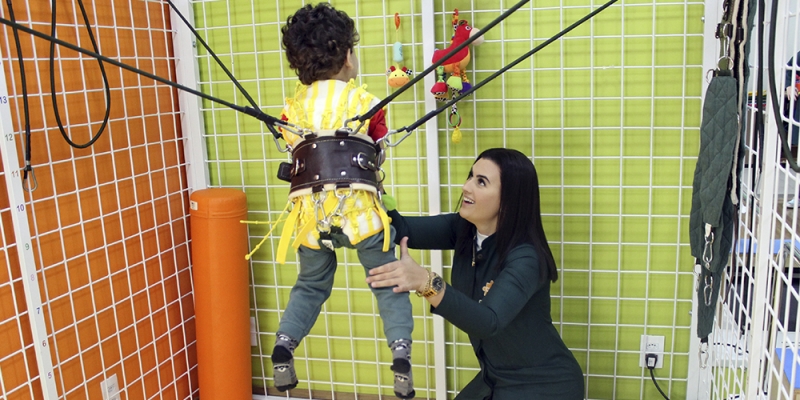 - Realização de treinos locomotores longos com associação de recursos auxiliares, como esteira com suspensoterapia para crianças que não conseguem ficar em pé sozinhas;