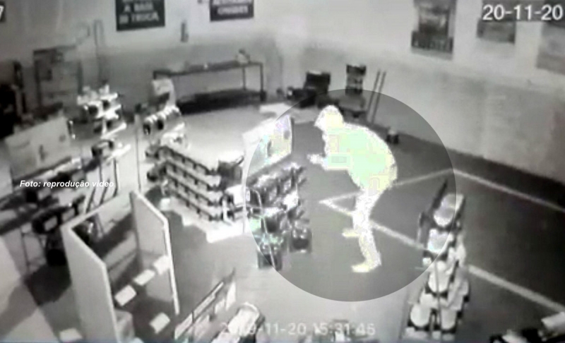 Mostram um dos criminosos usando um isqueiro para escolher os objetos que seriam levados e logicamente mais fáceis para serem vendidos.