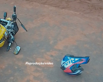 O criminoso abandonou a moto e até o capacete que estava usando.