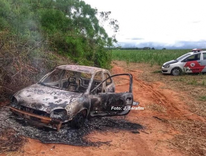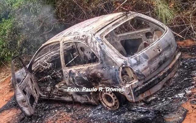 Mas, hoje de manhã, durante patrulhamento ainda com vistas ao furto, os PMs encontraram um carro GM/Corsa totalmente incendiado, na zona rural.
