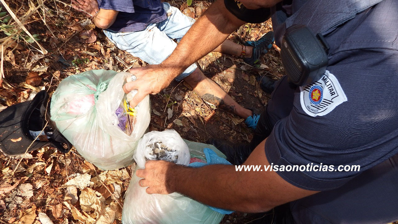 Já um adolescente de 17 anos foi surpreendido com 76 porções de crack, 29 de cocaína e 42 porções de maconha também prontas para a venda, bem como R$ 51,55 em notas e moedas variadas.