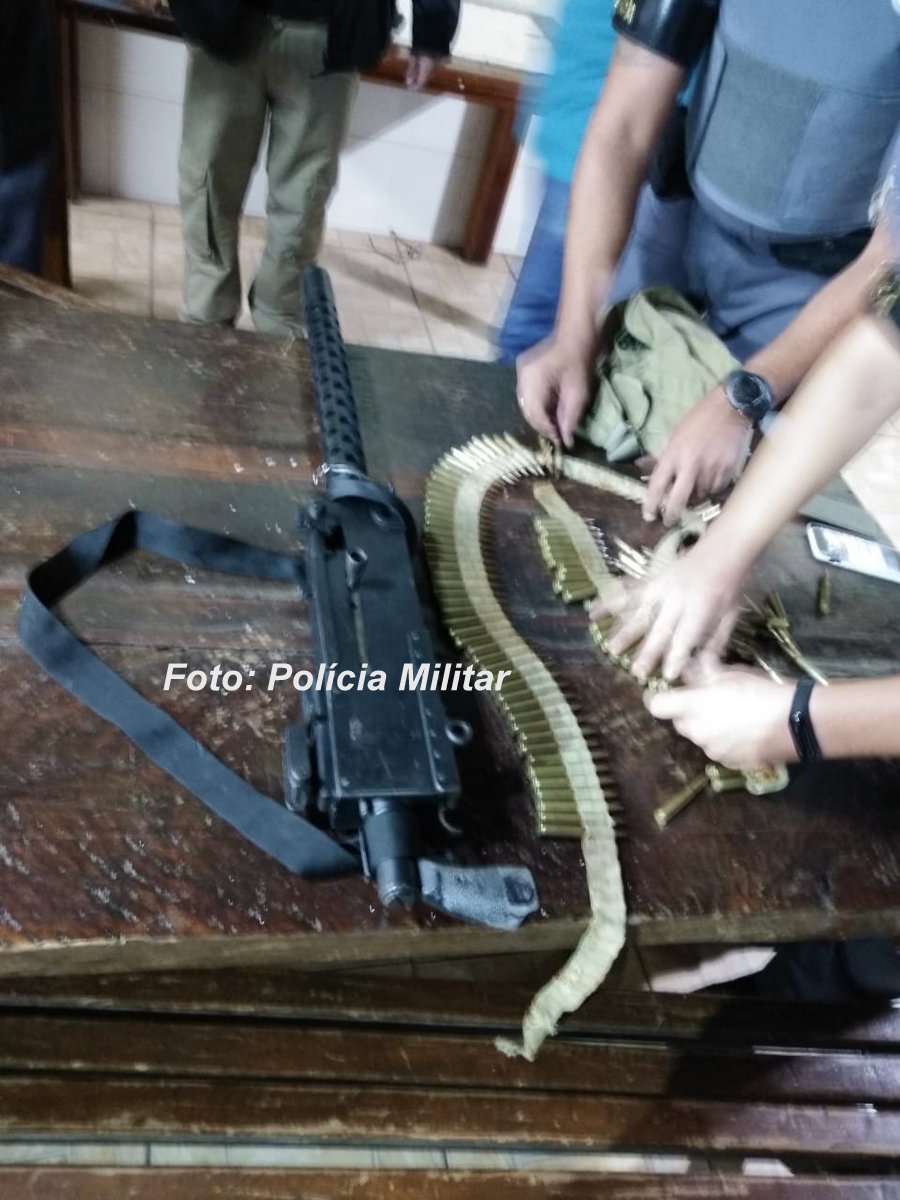 Na chácara, foram apreendidos uma metralhadora 762, três pistolas (duas ponto 40 e uma 380), um colete a prova de balas, munições e um carro com explosivos.