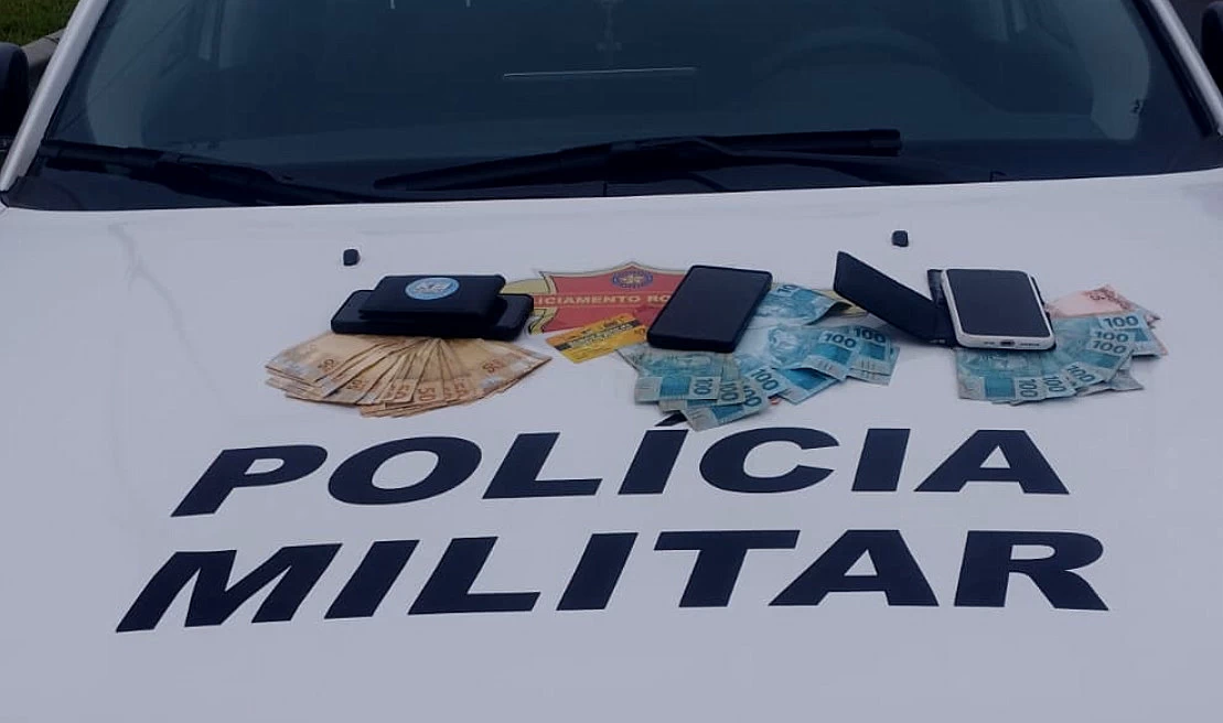 Na carteira do motorista, foram encontrados um cartão bancário do “Seguro Social do Governo Federal” em nome de outra pessoa e cerca de R$1.400,00. Como não soube responder qual a procedência, logo ficou claro que se tratavam de estelionatários.
