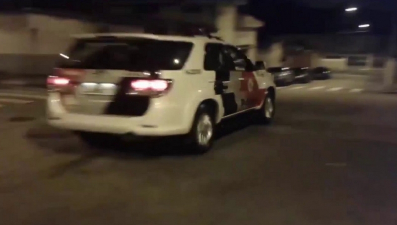 Como era de madrugada, isso chamou a atenção e resolveram desembarcar da viatura e verificar se havia alguma anormalidade. Neste momento, viram duas pessoas nos fundos que, ao perceberem que estavam cecadas, saíram correndo e efetuaram disparos.