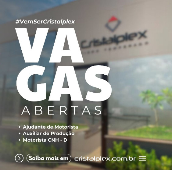 A Cristalplex, empresa mariliense no setor de beneficiamento de vidros temperados, comprometida com qualidade, segurança e inovação, abriu oportunidades de emprego. O objetivo é o crescimento profissional.