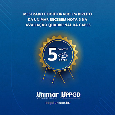 “Em todos estes anos de Unimar, sem dúvida, hoje é um dos melhores dias. A divulgação do resultado de um trabalho da pós-graduação em Direito, que eleva ainda mais o nível da nossa Universidade. Parabéns para toda a comunidade, viva todos os egressos que passaram e fizeram esta história, nossos alunos, professores e coordenação. Aproveito a oportunidade para convidar todos para que venham estudar na Unimar, a única instituição de ensino da região na qual é possível fazer graduação, especialização, mestrado, doutorado e pós-doutorado em Direito”, finaliza o reitor.