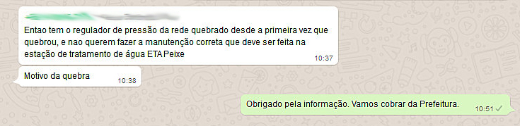 ocorrências em pouco menor de três meses. Um internauta enviou mensagem ao portal Visão Notícias.com dando uma "pista" para tais problemas, mas o DAEM imediatamente rechaçou, negando o defeito apontado.