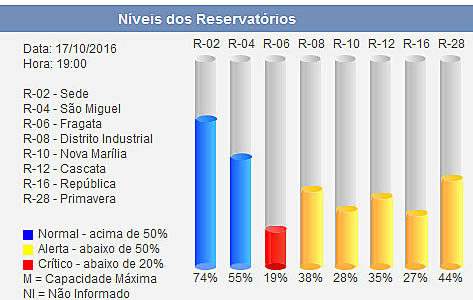 Níveis dos reservatórios agora à noite.