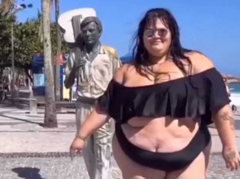 Thaís Carla voltou a dar uma aula de empoderamento e autoestima ao postar um vídeo em seu Instagram, ao lado da estátua em homenagem a Tom Jobim, que fica na orla da praia de Ipanema.